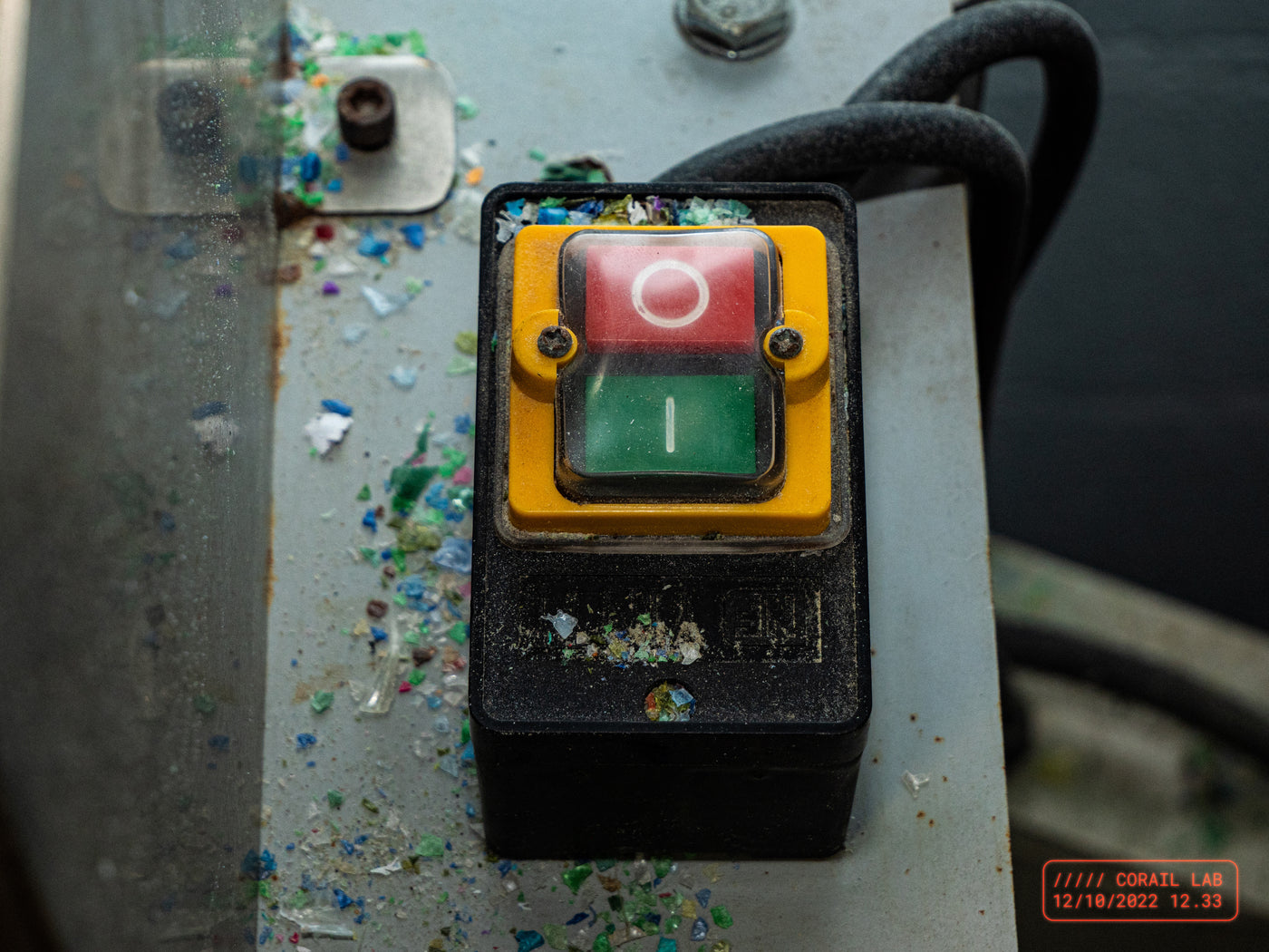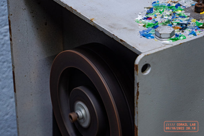 Notre CORAIL° Lab est là où les déchets marins sont : sur un port de Marseille, un des littoraux les plus pollués en Europe, situé en mer Méditerranée française. Ils sont récoltés, triés, stockés et broyés afin d’être utilisés pour la fabrication de nos produits. Nous avons investi dans des machines et des broyeuses de seconde main mais de hauts standards afin d’assurer le confort des travailleurs : systèmes insonorisants, silos anti-poussière et moteurs anti-chaleur.