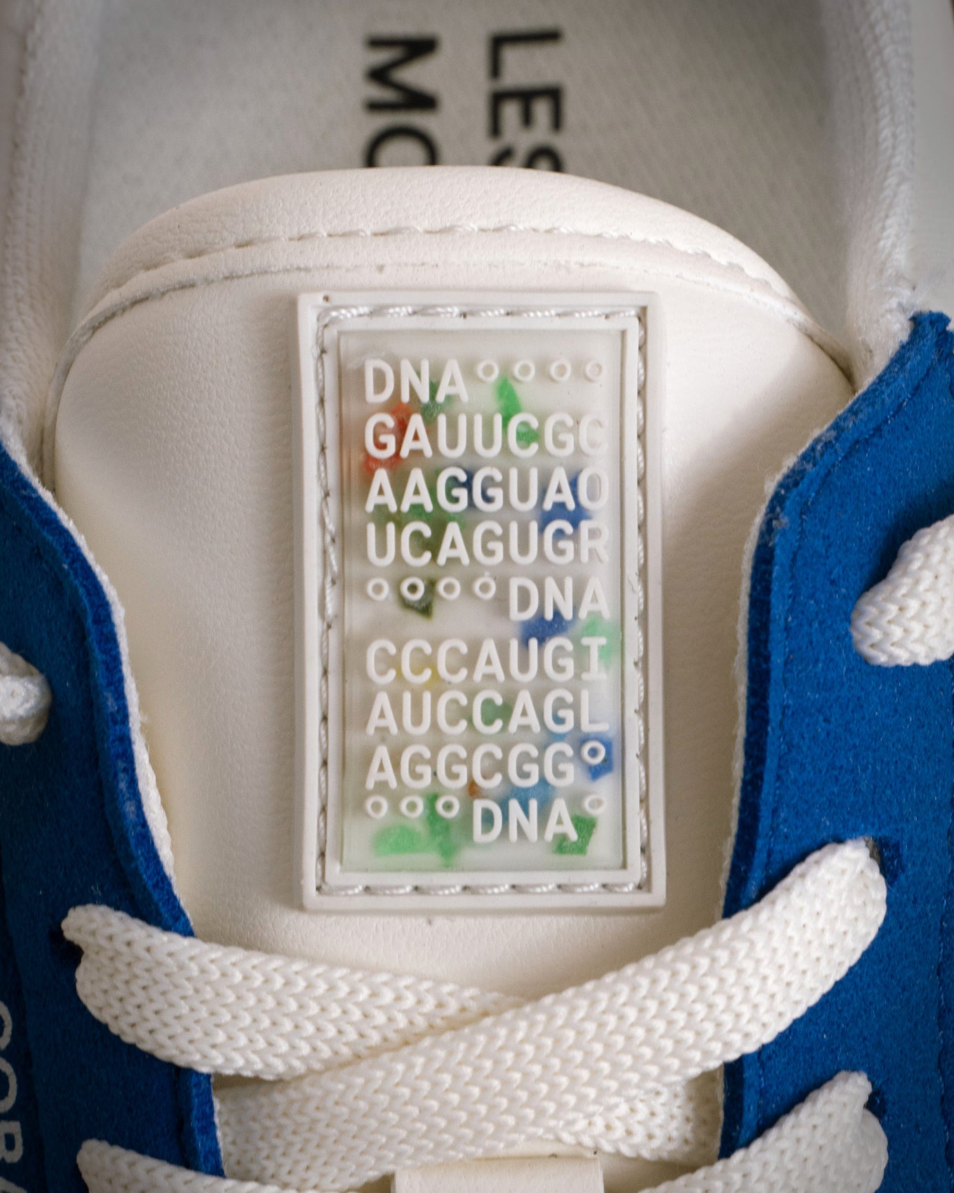 Nos baskets sont fabriquées à partir de Seadust, un matériaux que l’on a créé, à partir des bouteilles plastique et des filets de pêche récoltés et broyés par notre équipe de pêcheurs. La DNA, est notre toute première basket avec un patch sur l’avant également fait avec du Seadust. On peut y voir une suite d’adn d’inscrite dessus. Saurez-vous nous dire de quoi il s’agit ?