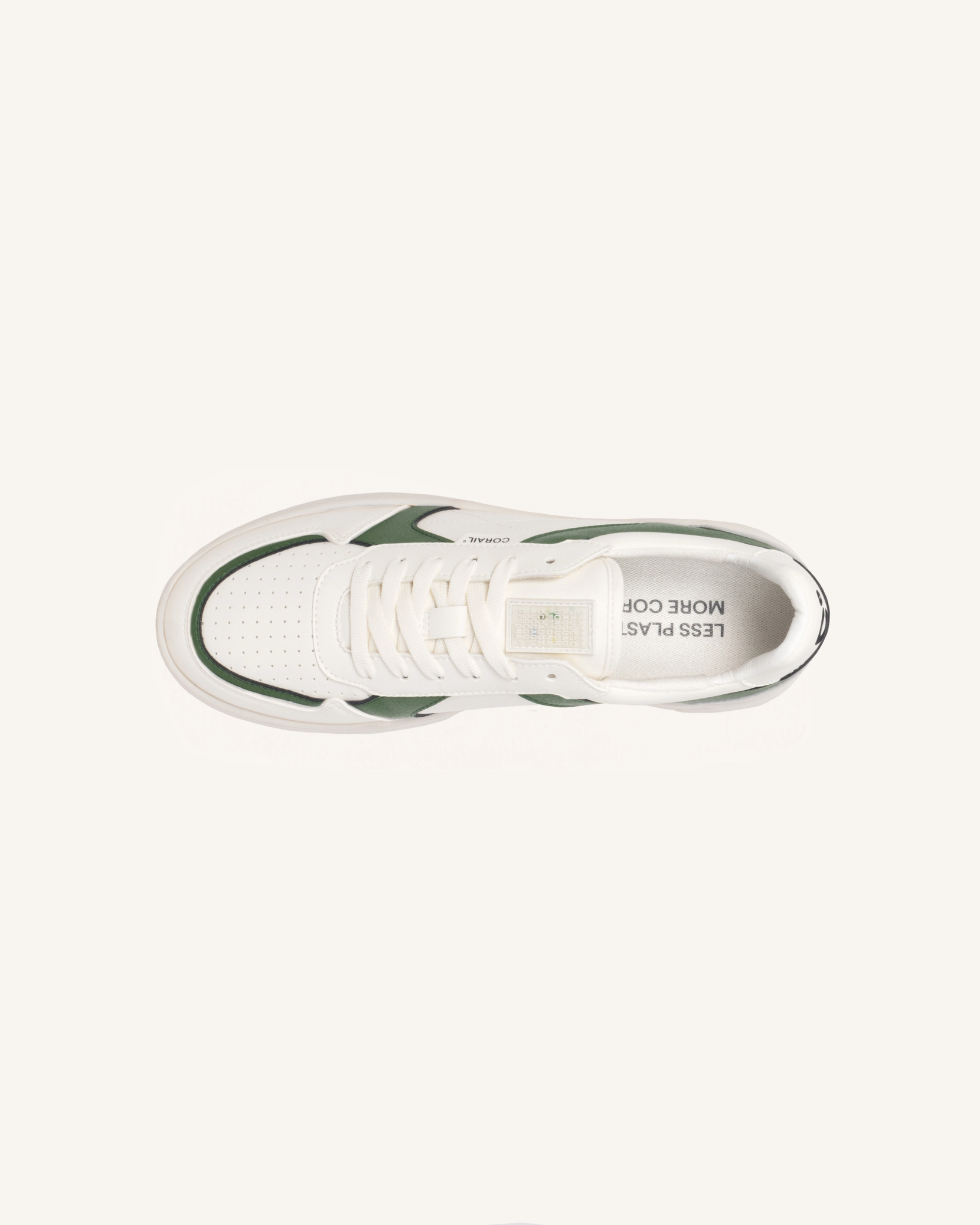Nos baskets sont fabriquées à partir de Seadust, un matériaux que l’on a créé, à partir des bouteilles plastique et des filets de pêche récoltés et broyés par notre équipe de pêcheurs. La DNA, est notre toute première basket avec un patch sur l’avant également fait avec du Seadust. On peut y voir une suite d’adn d’inscrite dessus. Saurez-vous nous dire de quoi il s’agit ?